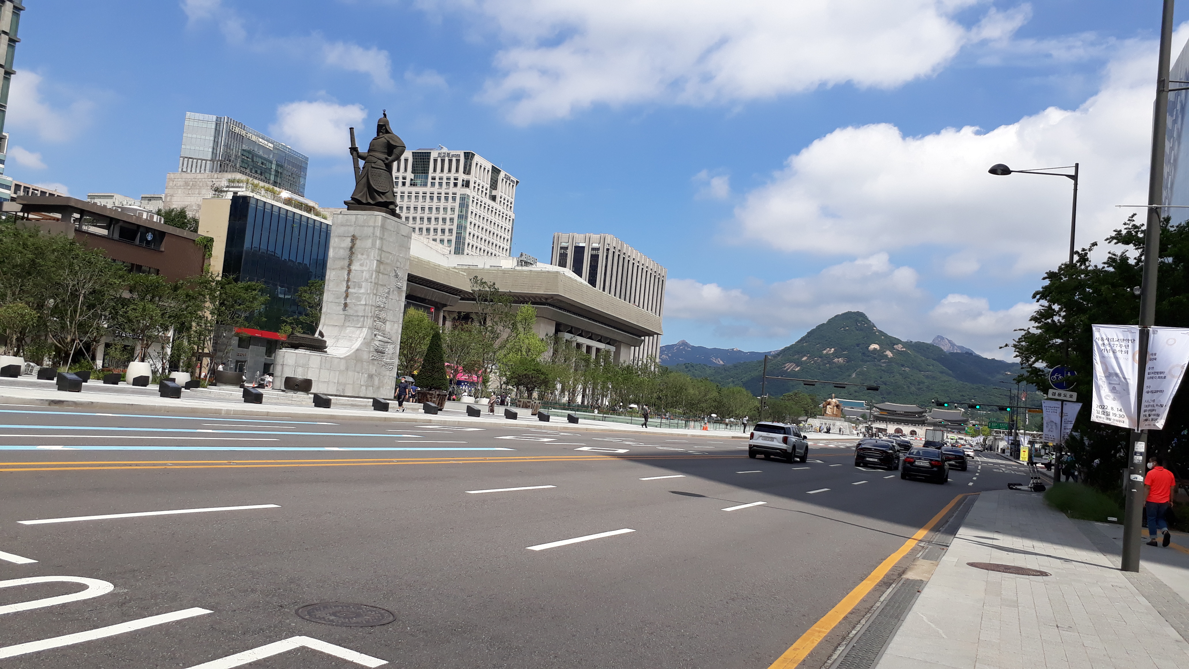 이순신 장군의 오른쪽인 이쪽만 車線을 살리고